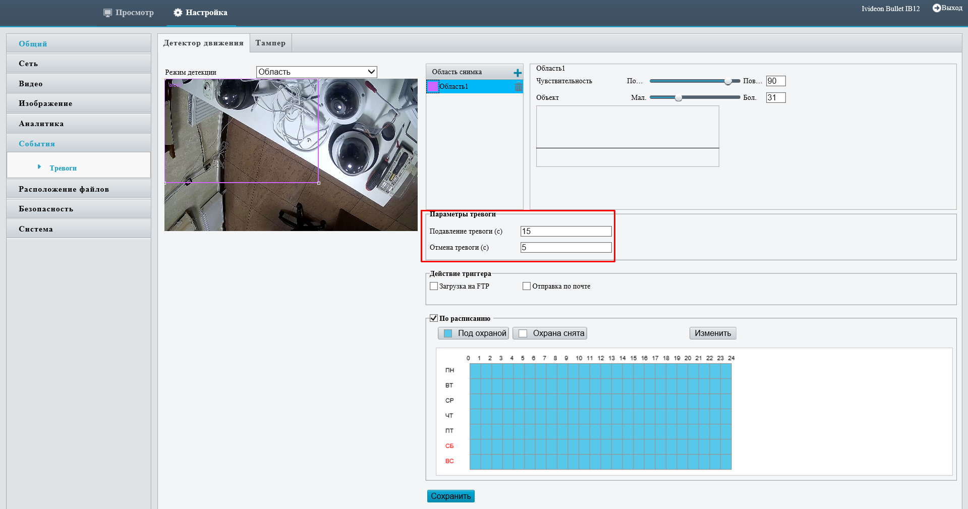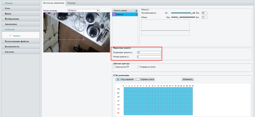- Определить зоны тревоги — области‚ где движение обязательно должно фиксироваться.